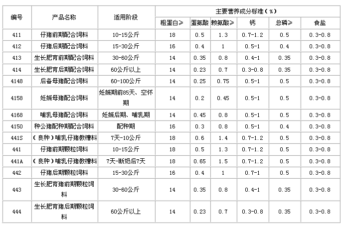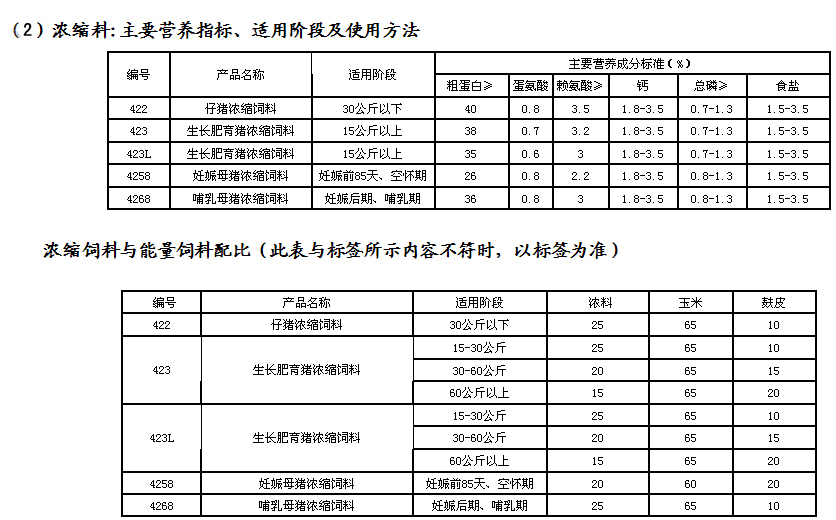 (1)全价料:主要营养指标、适用阶段及使用方法 |